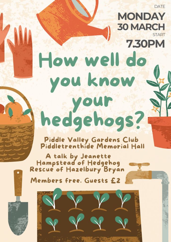 Monday 30 March, 7 for 7.30pm start. Piddletrenthide Memorial Hall. All welcome.